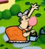 Billy's Grandma has the same large pink nose and "dot" eyes like Harold Billy and Darold do. She has gray hair wrapped up in a bun she wears a orange and white dress she also wears red lipstick.